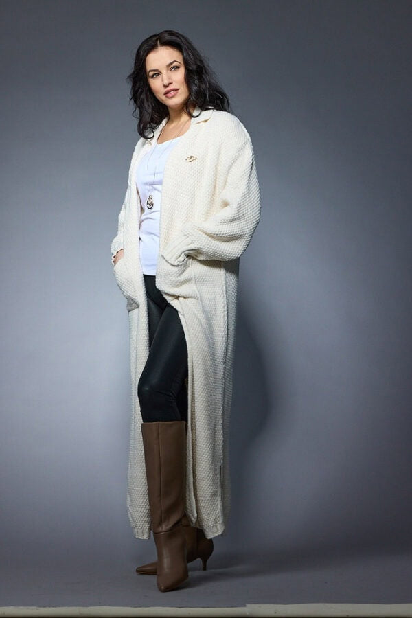 A uniquely designed, loose-fitting women's cardigan with a patterned fabric. Features an open front with a long neckline and two pockets. Its breathable material and simple cut ensure excellent ventilation. Features a Thomas Breitling 3D logo on the front left. The velvety soft, durable, breathable fabric is made from high-quality fibers and is very pleasant to the touch, guaranteeing exceptional comfort during wear. A unique piece that will always hold a special place in your wardrobe.