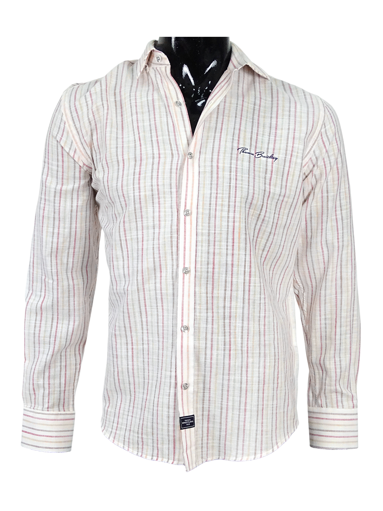 Egyedi csíkos mintás férfi len-pamut ing, belül azonos színű passzéval. Erős gallérral, amely biztosítja a gallér stabilitását. Hímzett márkajelzéssel a mellkas bal oldalán. A bársonyosan puha, tartós anyag kiváló minőségű len és pamutszálból készült, amely nagyon kellemes tapintású, rendkívül kényelmes érzést garantál viselés közben. Időtálló, szellős darab, amely mindig népszerű részét képezi majd elegáns és lezser stílusának. Népszerű viselet farmer nadrággal és chino nadrággal kombinálva egyaránt.