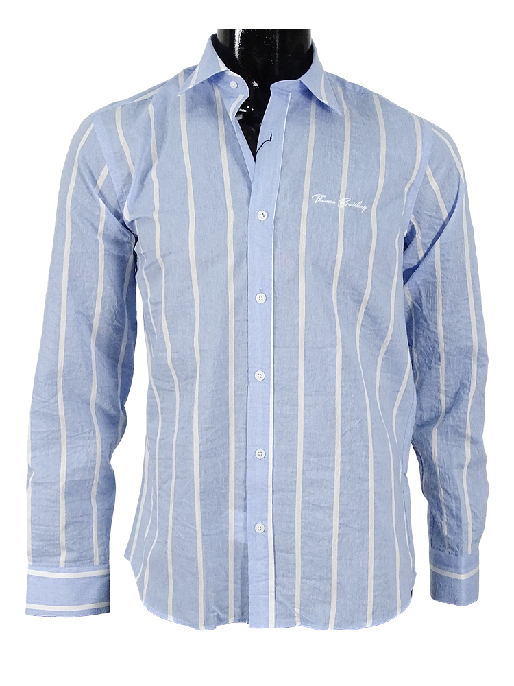 Len hatású, csíkos férfi ing, kényelmes ujjakkal és belül azonos színű passzéval. Erős gallérral, amely biztosítja a gallér stabilitását. Hímzett márkajelzéssel a mellkas bal oldalán. A bársonyosan puha, tartós, len hatású anyag kiváló minőségű pamutszálból készült és nagyon kellemes tapintású, rendkívül kényelmes érzést garantál viselés közben. Időtálló, amely mindig népszerű részét képezi majd elegáns és lezser stílusának. Népszerű viselet farmer nadrággal és chino nadrággal kombinálva egyaránt.