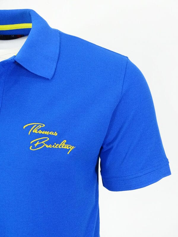 Men's short-sleeved polo shirt made from a basic, solid-color blended fabric, with a collar and pleasantly soft, high-quality cotton. A three-button tennis polo shirt with a matching collar and cuffs. Features an embroidered Thomas Breitling logo on the chest. The premium fabric composition consists of high-quality pique cotton threads, guaranteeing breathability. Extremely comfortable, ideal for everyday wear, and a versatile base for a casual-elegant style.