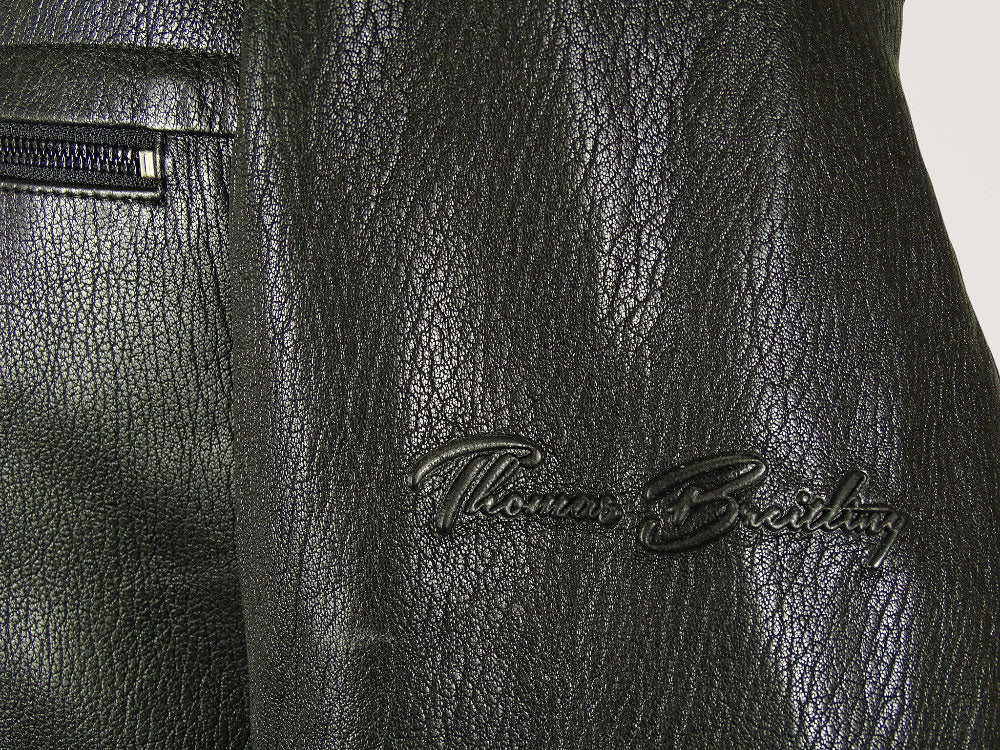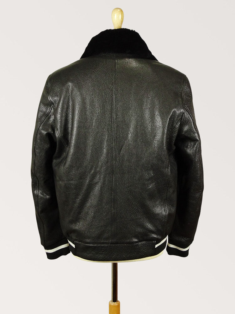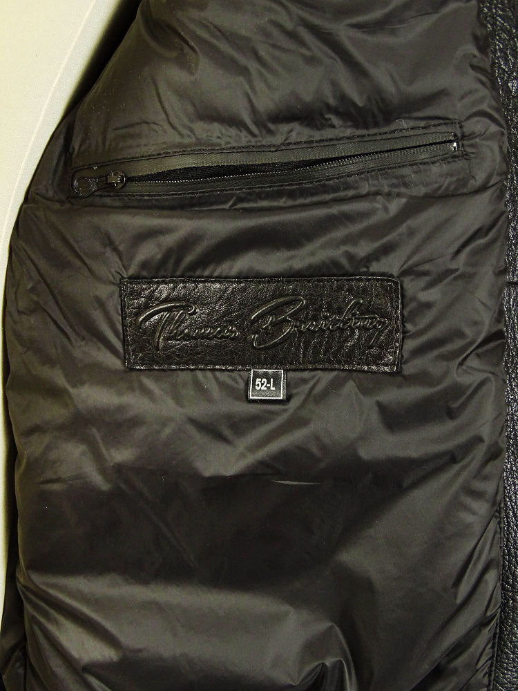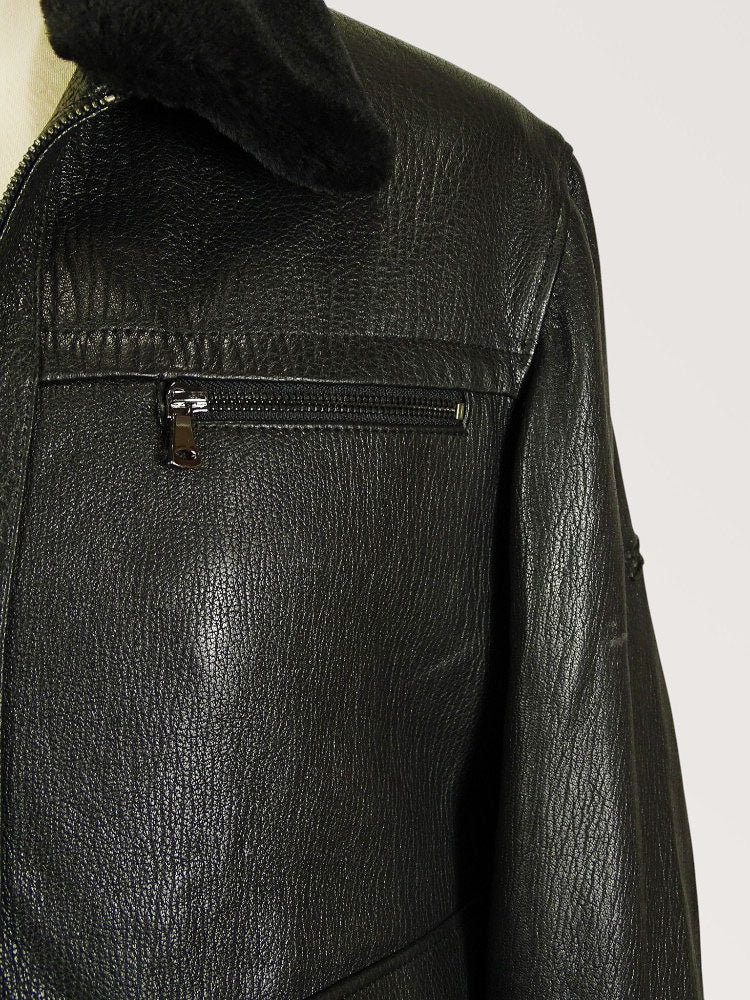 A thick men's leather jacket made of calfskin, offering excellent quality and a relaxed look. It features standard sleeve length, elasticated cuffs at the waist and sleeves, and a 3D Thomas Breitling logo on the left shoulder. The two front flap pockets close with snaps, while the additional chest pockets close with zippers. It has a double-slider zipper closure at the front and a detachable fur collar at the top. The usual inner pockets are also included, one on each side, also closing with zippers. It helps you achieve a relaxed style that will become a favorite part of your wardrobe. Thanks to its excellent insulation, it's great even in colder weather.
