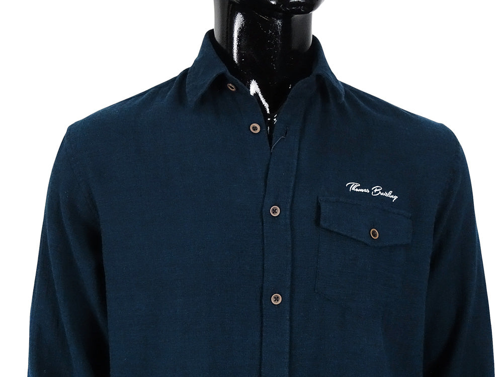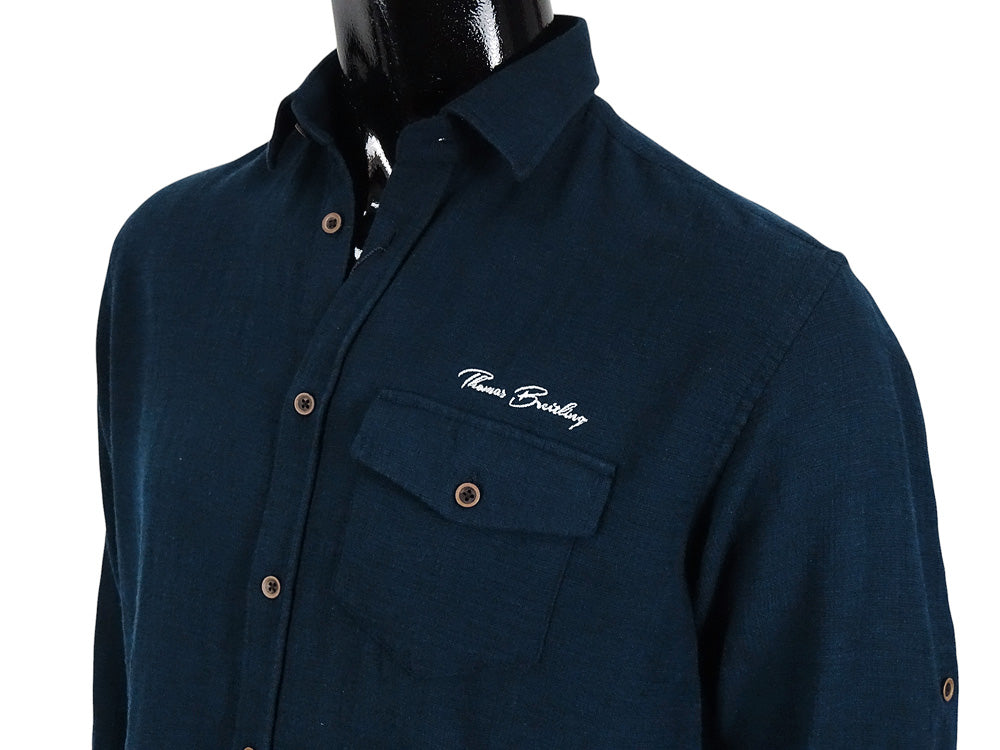 Egyszínű végig gombos hosszú ujjú galléros férfi ing. Hímzett Thomas Breitling márkajelzéssel a mellkas bal oldalán. A könnyű és puha, len hatású anyag kiváló minőségű pamutszálból készült és nagyon kellemes tapintású, rendkívül kényelmes érzést garantál viselés közben. Nyári klasszikus, amely mindig népszerű részét képezi majd elegáns stílusának. Népszerű viselet nadrággal vagy farmerral kombinálva egyaránt.