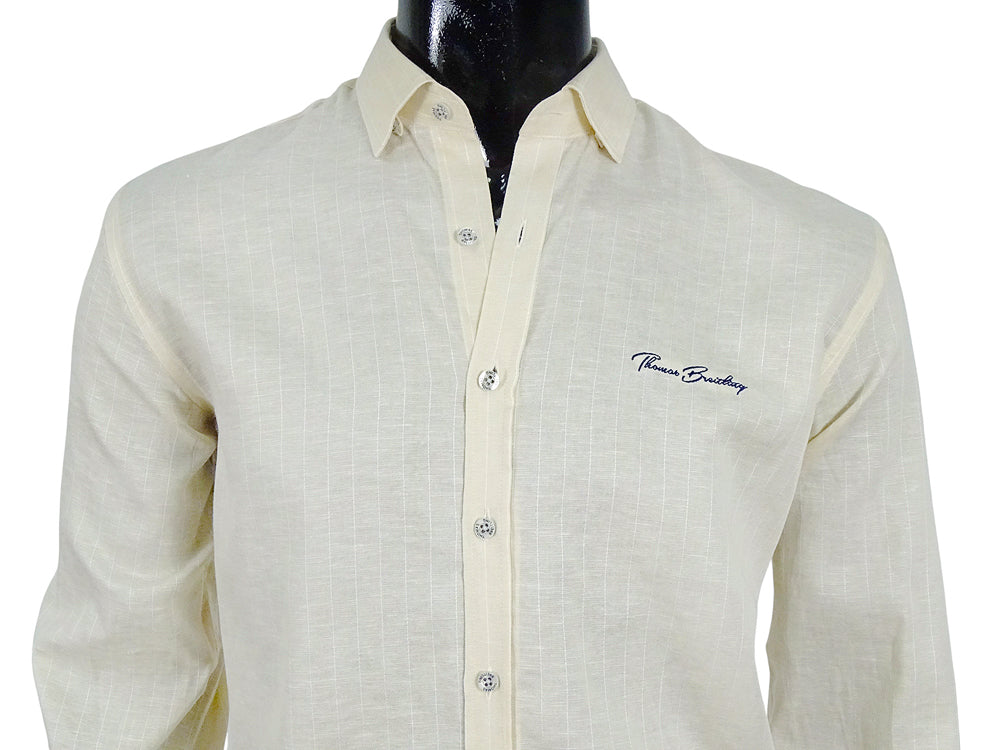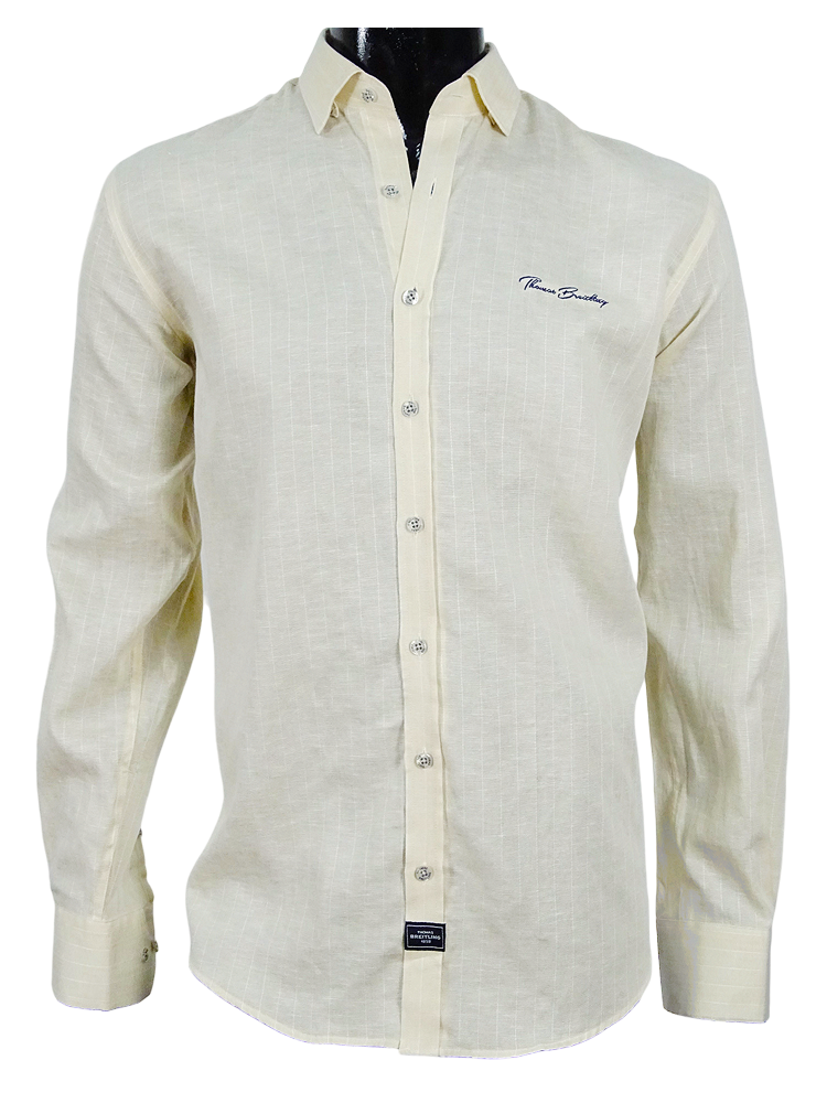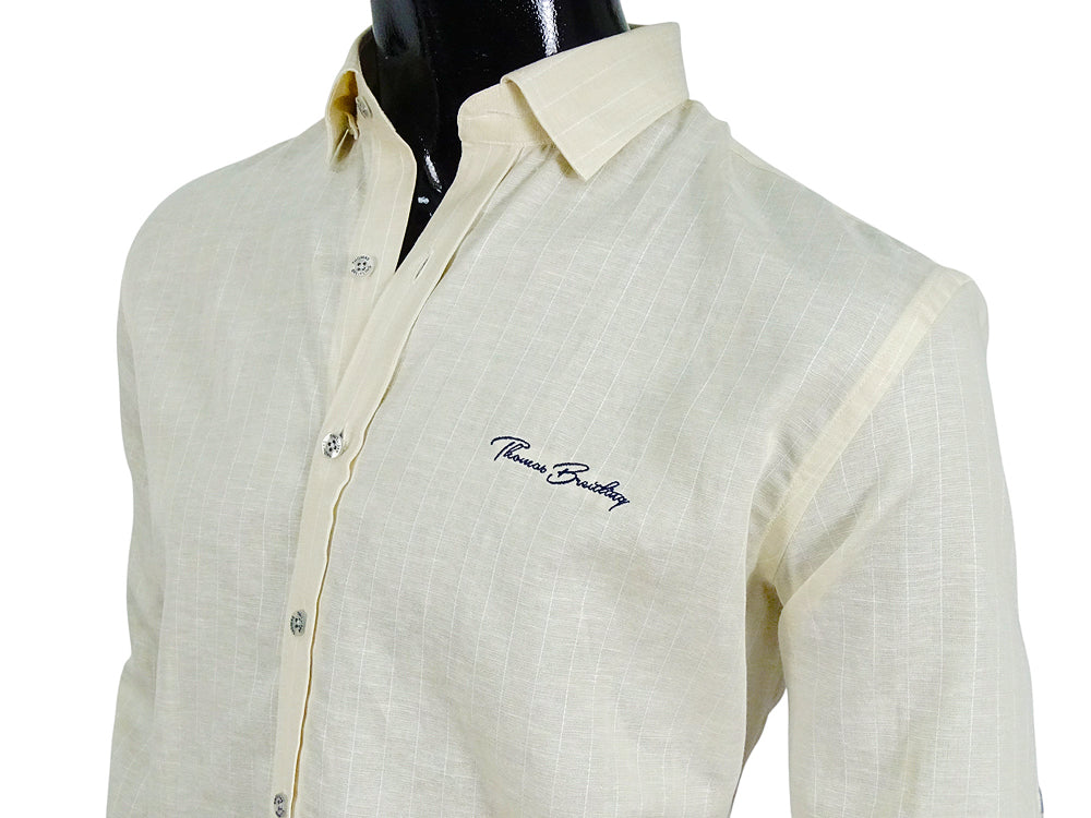 Vékonycsíkos, egyenes szabású laza kötésű anyagában szövött mintás hosszúujjú férfi ing. Legombolható gallérral, amely biztosítja a gallér stabilitását. Az anyaga légáteresztő, amely rendkívüli szellőzést biztosít. A mellkas bal oldalán Thomas Breitling logóval amely harmóniában van az ing színével. A puha, tartós, légáteresztő anyag kiváló minőségű szálakból készült és nagyon kellemes tapintású, rendkívül kényelmes érzést garantál viselés közben. Egyedülálló darab, amely mindig különleges helyet foglal majd el az elegáns és lezser stílusú ruhatárában.