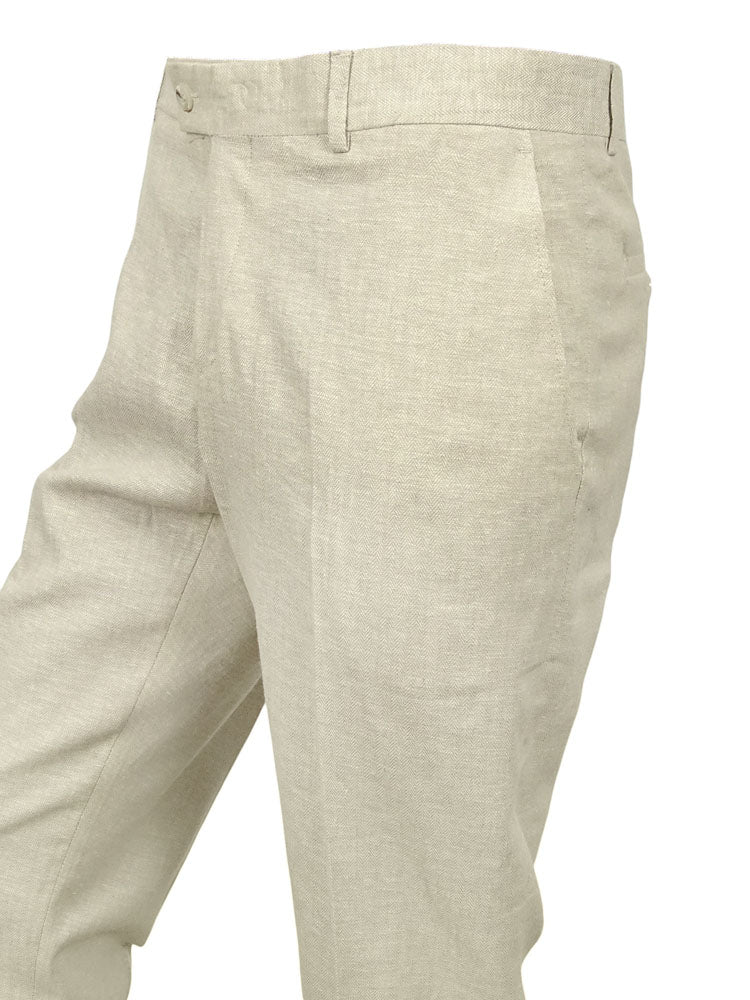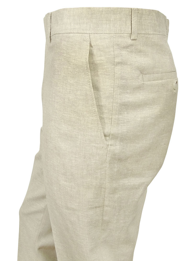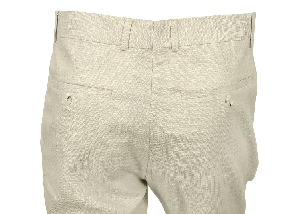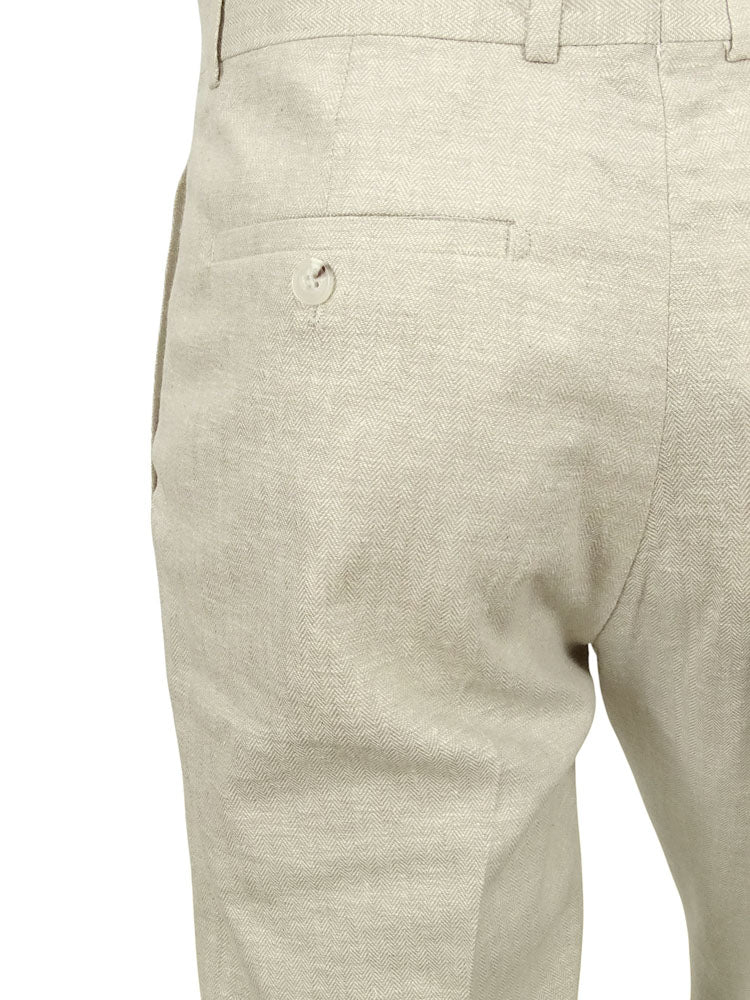 Elegant herringbone-patterned men's linen-cotton trousers in a high-quality fabric. These loose-fitting, high-quality trousers feature front and back pockets. A unique piece that lends a fashionable and relaxed-elegant look to the wearer. It pairs well with the matching jacket, creating a perfect complement to any relaxed-elegant outfit. A must-have for any man's wardrobe.