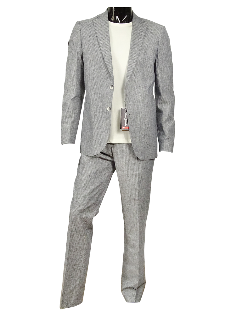 Elegant, densely striped men's linen-cotton blazer, made from high-quality material. Two-button design with inside and outside pockets. A unique piece that lends a fashionable and casually elegant look to the wearer. A flattering top that perfectly complements any casual-elegant outfit. A must-have in any man's wardrobe.