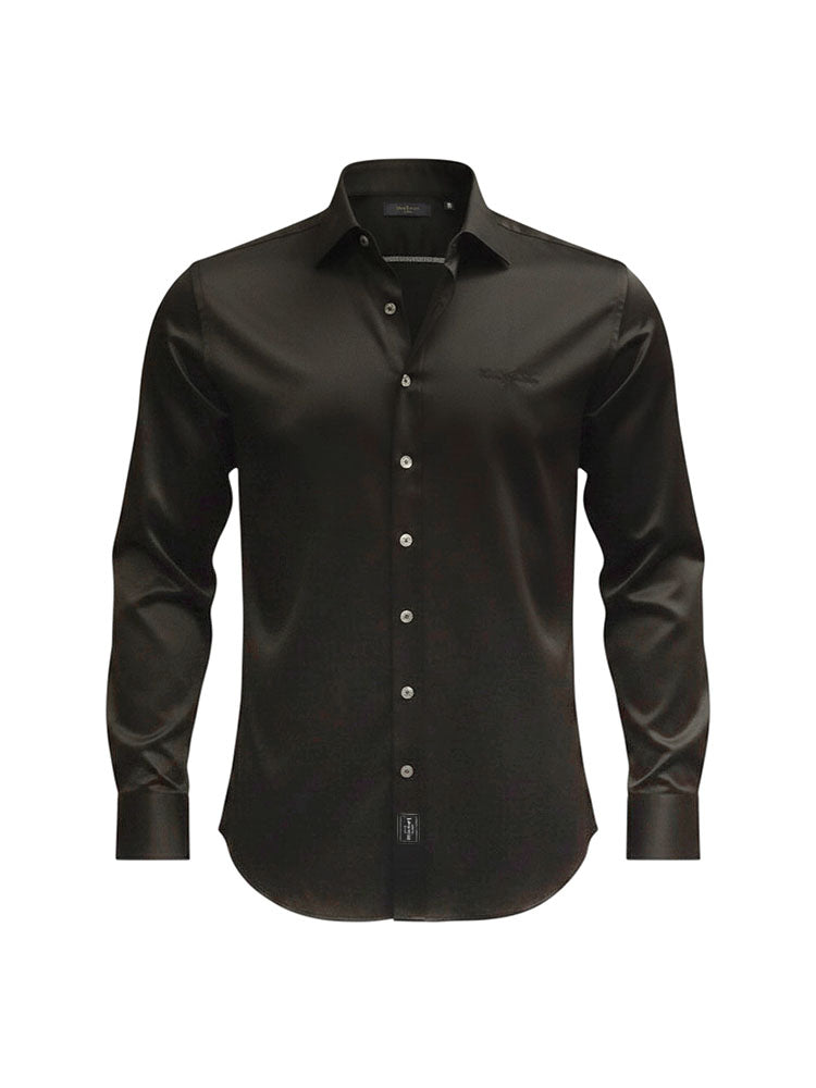 Egyszínű selyemhatású hosszú ujjú férfi ing (fekete)