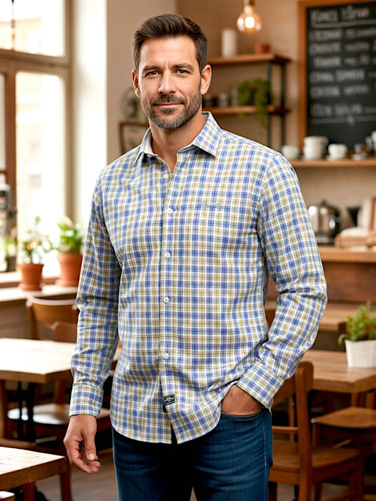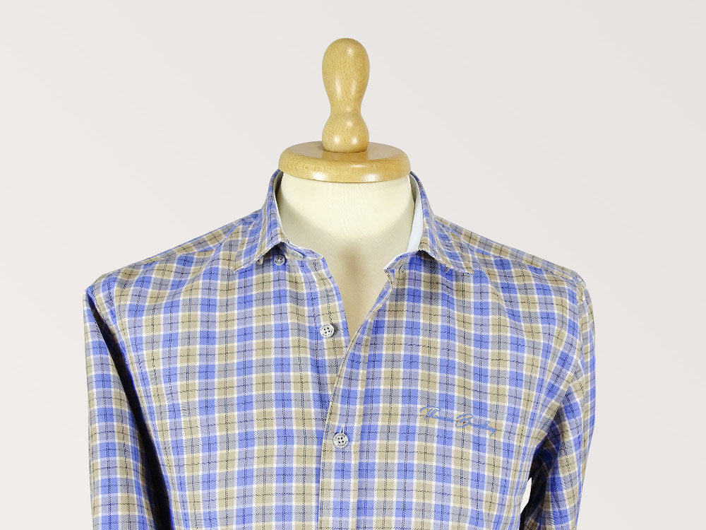 Egyedi kockás hosszú ujjú egyenes szabású férfi pamut ing, kényelmes ujjakkal és belül eltérő színű passzéval. Rejtettgombos gallérral, amely biztosítja a gallér megfelelő stabilitását. Hímzett márkajelzéssel a mellkas bal oldalán. Minőségi tartós festett kevertszálas anyagból készült. Kellemes tapintású, amely kényelmes érzést garantál viselés közben. Egyedülálló kivitel, amely mindig népszerű részét képezi majd elegáns és lezser stílusú megjelenésének. Nagyszerű viselet farmer nadrággal és chino nadrággal kombinálva egyaránt.