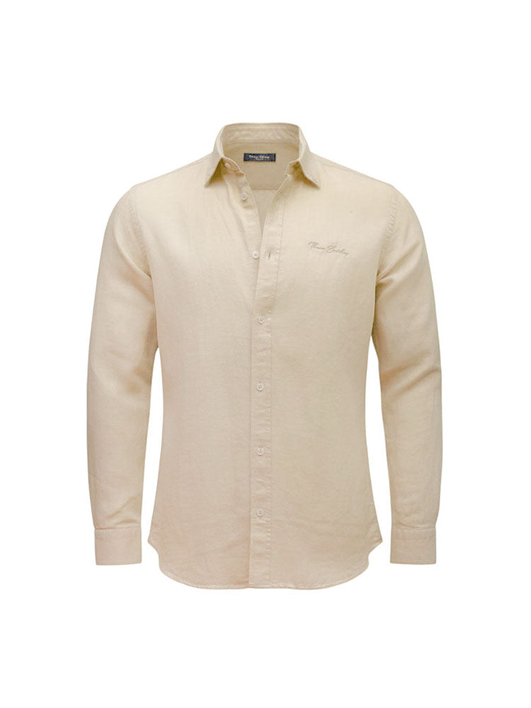 Prémium hosszú ujjú pamut-lenvászon férfi ing (bézs)