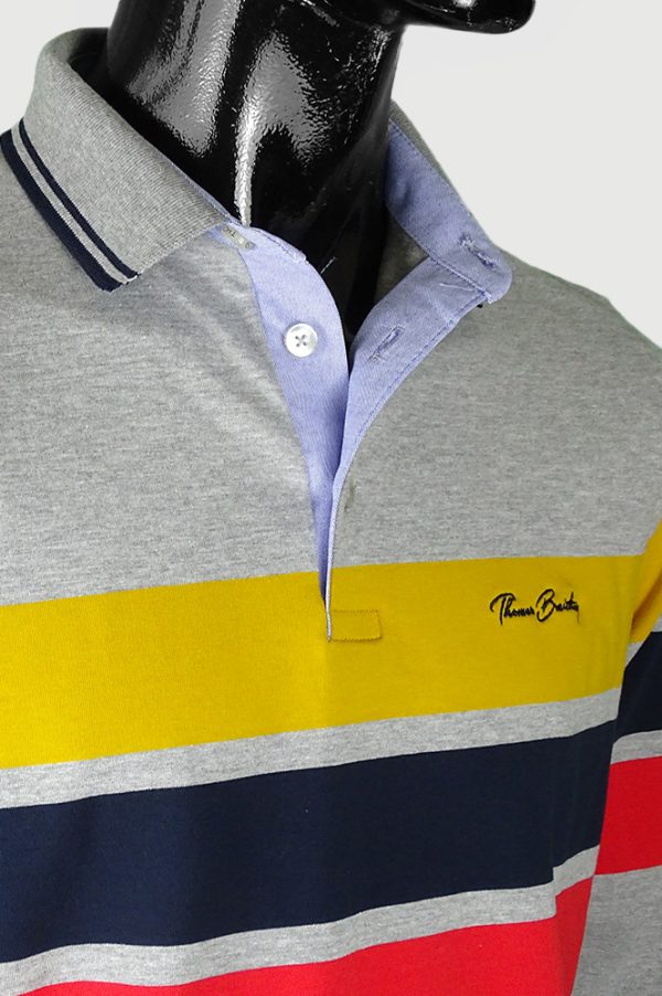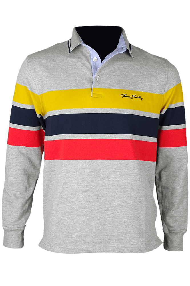 Thomas Breitling csíkos hosszú ujjú galléros férfi pulcsi hímzett márkajelzéssel.