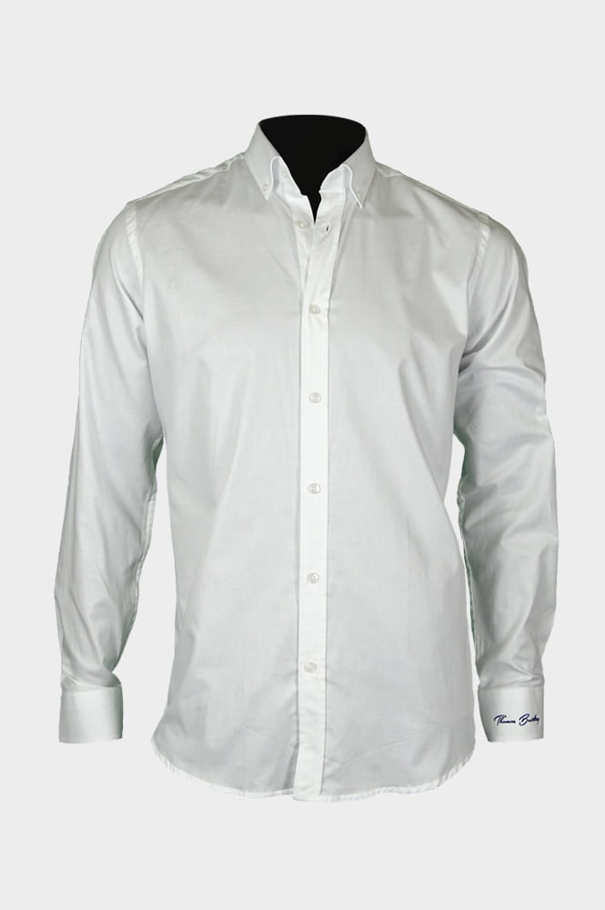 Thomas Breitling egyszínű legombolható galléros hosszú ujjú férfi anyagában oxford mintás pamut ing, hímzett márkajelzéssel.