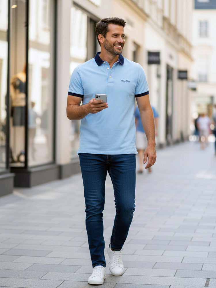 Galléros 3 gombos rövid ujjú férfi piké póló, eltérő színű gallérral, hímzett márkajelzéssel a mellkas bal oldalán. A prémium anyagösszetétel kiváló minőségű pamut anyagból, mely finoman porózus textúrájának köszönhetően az egyedi légáteresztő képességet garantálja. Rendkívül kényelmes, mindennapi viseletre kiválóan alkalmas, sokoldalúan kombinálható alapja a laza stílusnak.