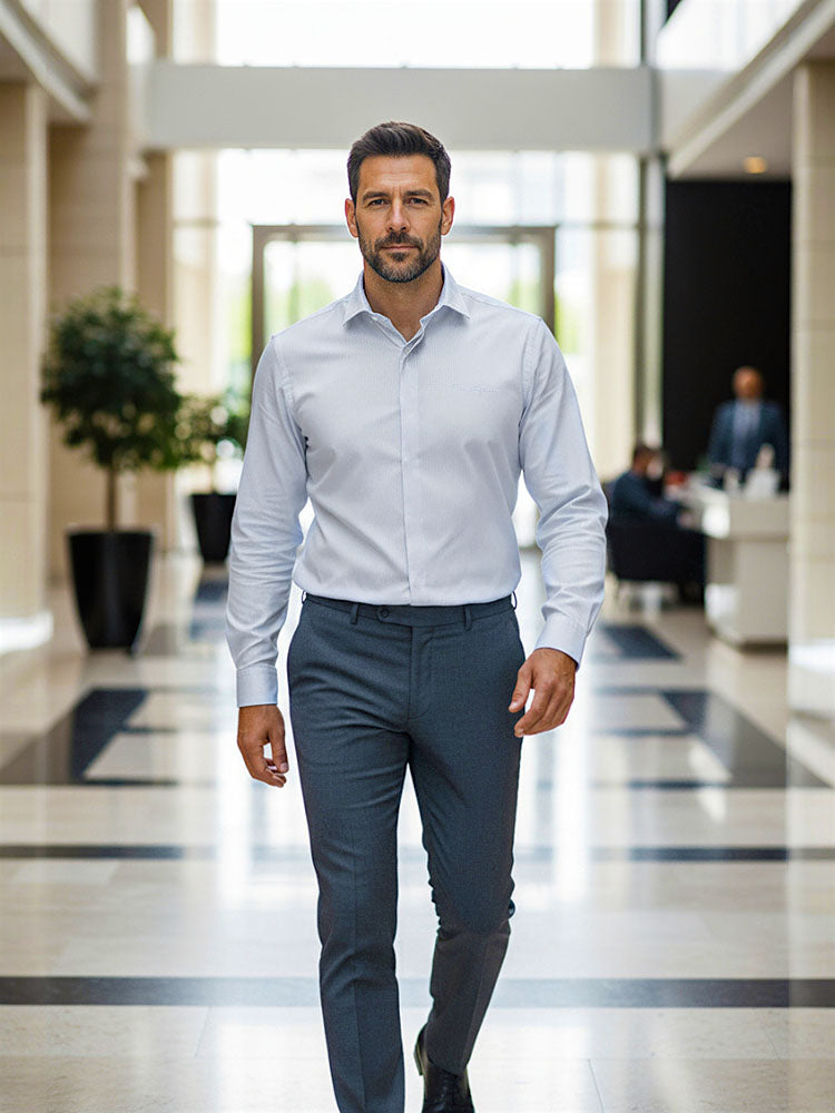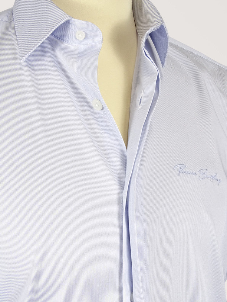Mikro csíkos férfi kevertszálas pamut ing, kényelmes ujjakkal és belül azonos színű passzéval. Erős gallérral, amely biztosítja a gallér stabilitását. Hímzett márkajelzéssel a mellkas bal oldalán. A bársonyosan puha, tartós, selyem hatású anyag kiváló minőségű micropamut szálakból készült és nagyon kellemes tapintású, rendkívül kényelmes érzést garantál viselés közben. Időtálló, amely mindig népszerű részét képezi majd elegáns és lezser stílusának. Népszerű viselet farmer nadrággal és chino nadrággal kombinálva egyaránt.