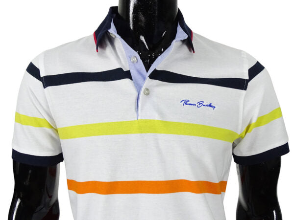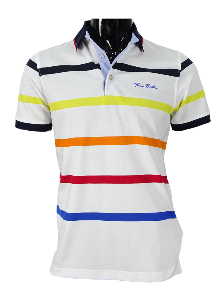 Csíkos rövidujjú galléros férfi piké póló, kellemesen puha kiváló minőségű pamutból. 3 gombos kivitel. A mellkasra hímzett Thomas Breitling márkajelzéssel. A prémium anyagösszetétel kiváló minőségű pamutszálakból áll, mely finoman porózus textúrájának köszönhetően az egyedi légáteresztő képességet garantálja. Rendkívül kényelmes, mindennapi viseletre kiválóan alkalmas, sokoldalúan kombinálható alapja a laza-elegáns stílusnak.