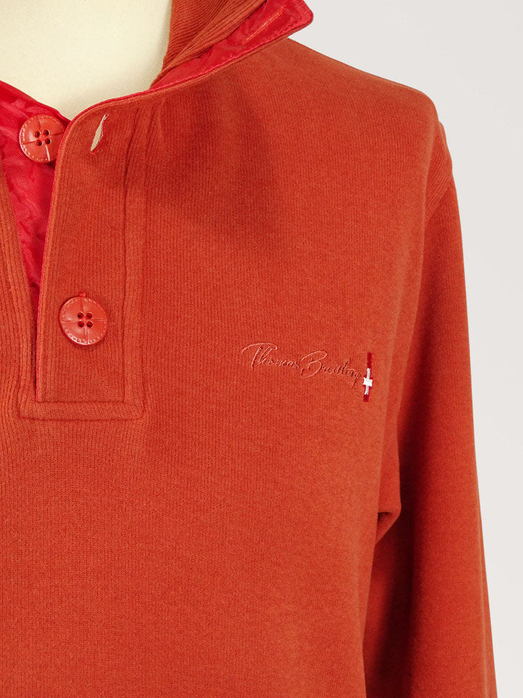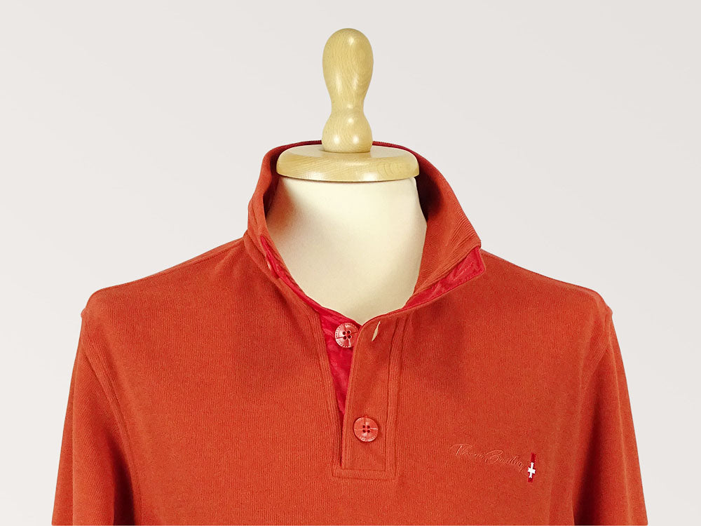 Állógalléros férfi selanik pulóver. Három gombos kialakítás a bordázott gallérnál, laza esésű rugalmas szegéllyel a derékon és az ujjvégen, mely lezser-elegáns megjelenést kölcsönöz viselőjének. Írott Thomas Breitling márkajelzéssel hímezve a mellkasán, mely remekül harmonizál a pulóver színével. Egy szívünkhöz közelálló pulcsi, ugyanis a Selanik egy egyedülálló puha kötött anyag, amely finom textúrájában és különleges higiéniájában különbözik a hasonló anyagoktól. Praktikus anyag, lágysága ellenére meglehetősen sűrű, mégis formastabil. Nagyon finoman illeszkedik a testhez, ugyanakkor átengedi a levegőt, és kiváló hőszabályozást garantál. Esztétikus megjelenésű rugalmas és alacsony gyűrődésű, melynek kopásállósága kiváló. Higiénikus és hipoallergén. Jól felszívja és elpárologtatja a nedvességet. További jellemzője, kényelem és kényeztetés a használat során.