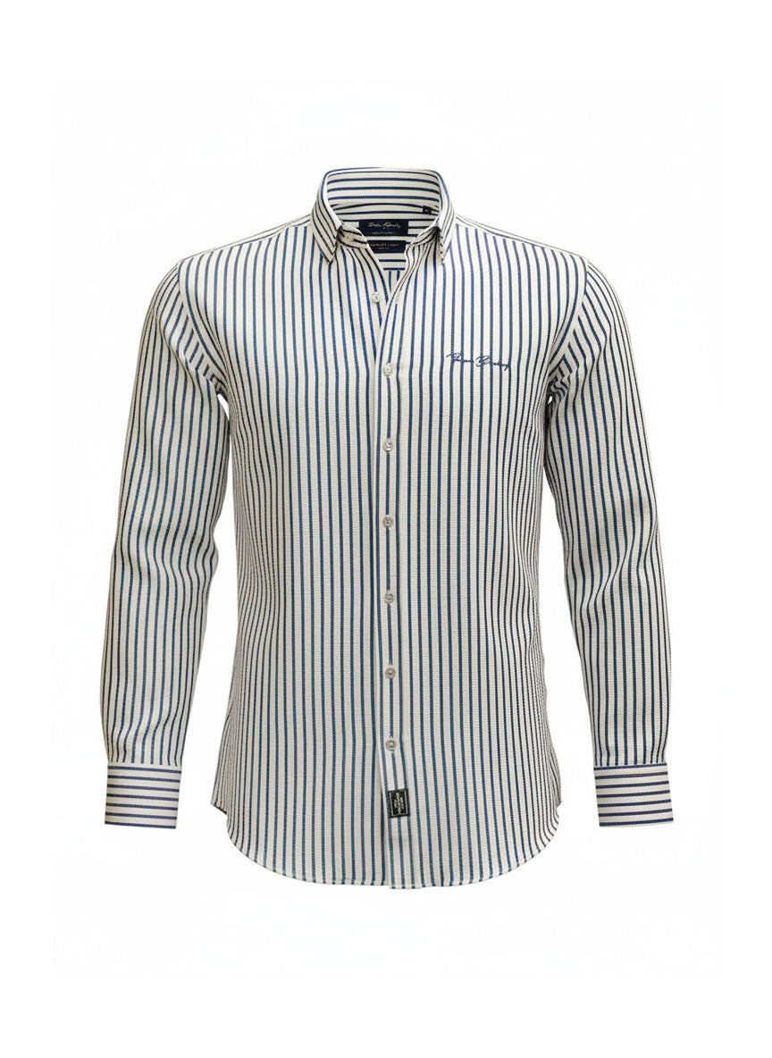 Krepp hatású csíkos hosszú ujjú férfi ing (fehér, s.kék)