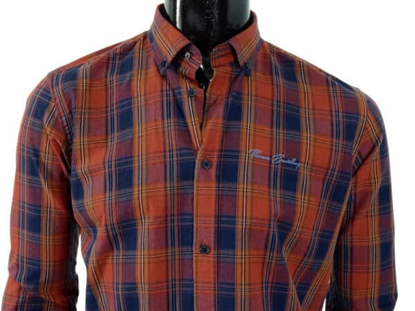 Kockás hosszú ujjú egyenes szabású férfi pamut ing, kényelmes ujjakkal és belül eltérő színű passzéval. Rejtett gombos gallérral, amely biztosítja a gallér megfelelő stabilitását. Hímzett márkajelzéssel a mellkas bal oldalán. Minőségi tartós pamutszálból készült és kellemes tapintású, amely kényelmes érzést garantál viselés közben. Egyedülálló kivitel, amely mindig népszerű részét képezi majd elegáns és lezser stílusának. Népszerű viselet farmer nadrággal és chino nadrággal kombinálva egyaránt.